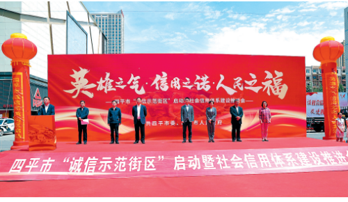 5月27日,四平市“诚信示范街区”启动暨社会信用体系建设推进会在铁西区南仁兴街举行。国家公共信用信息中心应用处负责人孔守斌、市委书记郭灵计致辞并为“诚信示范街区”揭牌。省政务服务和数字化建设管理局副局长管德华出席活动并致辞。
