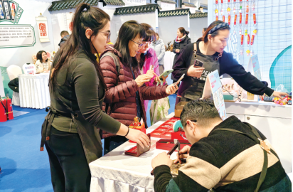 游客在我市展区购买传统手工艺品。 于天韵 摄