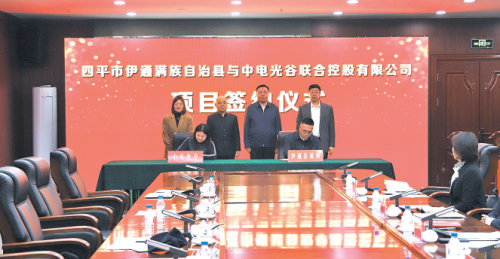 签约仪式上,中电光谷联合控股有限公司与伊通满族自治县主要负责同志签署《战略合作协议》,与会领导证签。