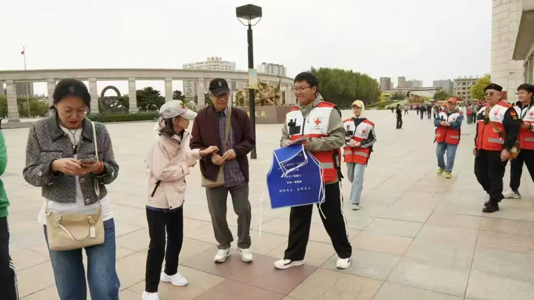 红十字青少年们设立了临时宣传点,热情地向过往市民和游客分发宣传资料。此次宣传内容聚焦三个方面:《四平市市民文明促进条例》宣传手册、消防安全知识传单、以及禁毒防艾宣传资料。队员们分工明确,配合默契,现场气氛热烈而有序,市民们纷纷驻足,认真阅读资料,并与队员进行交流。