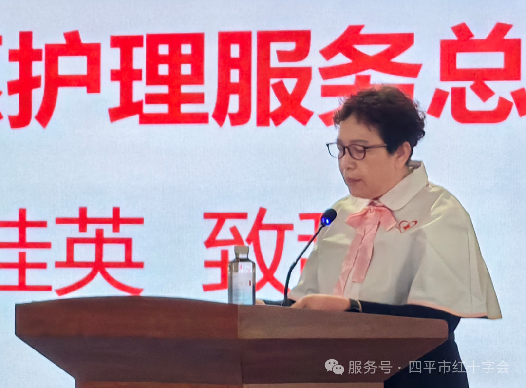 中国南丁格尔志愿护理服务总队副理事长张桂英宣读了《关于“中国南丁格尔志愿护理服务总队四平肿瘤医院志愿护理服务队”成立的批复函》,四平肿瘤医院志愿护理服务队成为总队的第1129支志愿服务队伍。