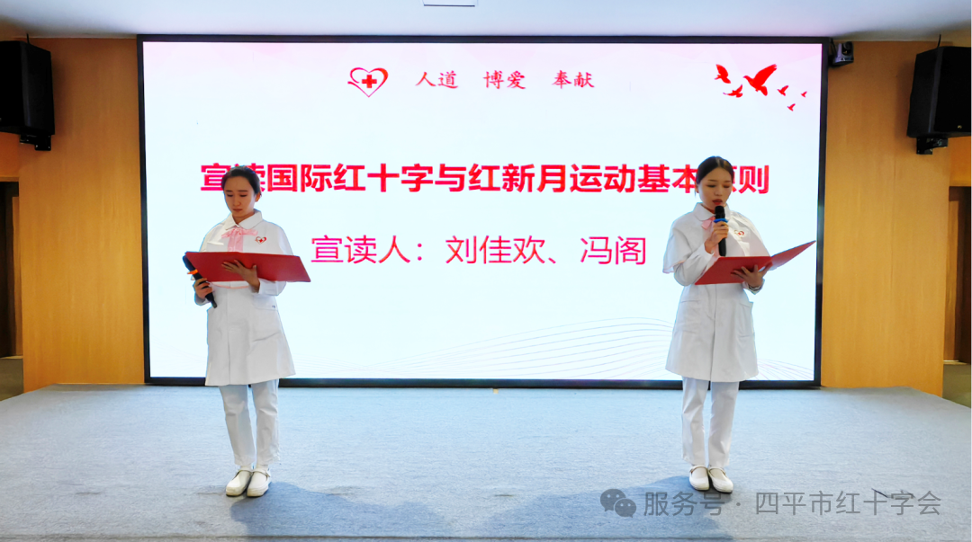 大会在庄严的国歌声中拉开帷幕,志愿者代表宣读了《国际红十字与红新月运动基本原则》。