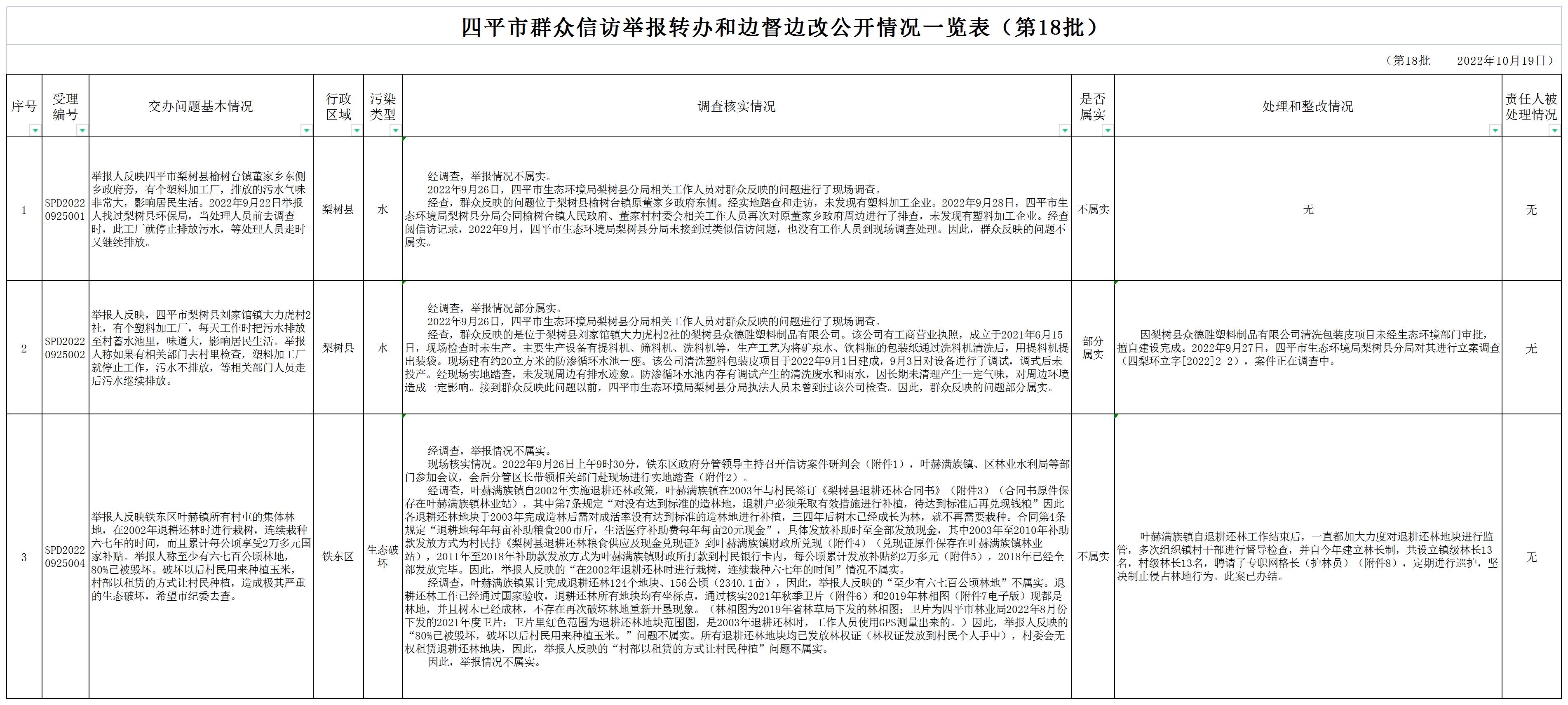 四平市群众信访举报转办和边督边改公开情况一览表(第18批)