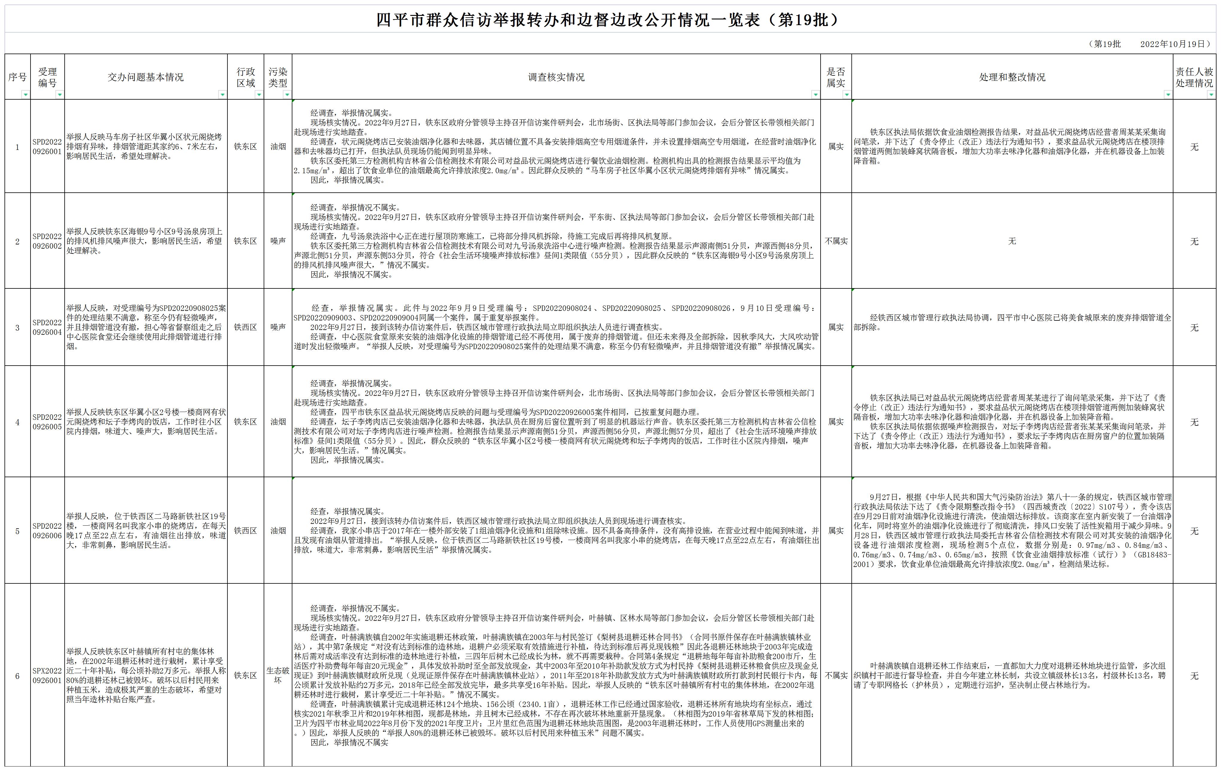 四平市群众信访举报转办和边督边改公开情况一览表(第19批)