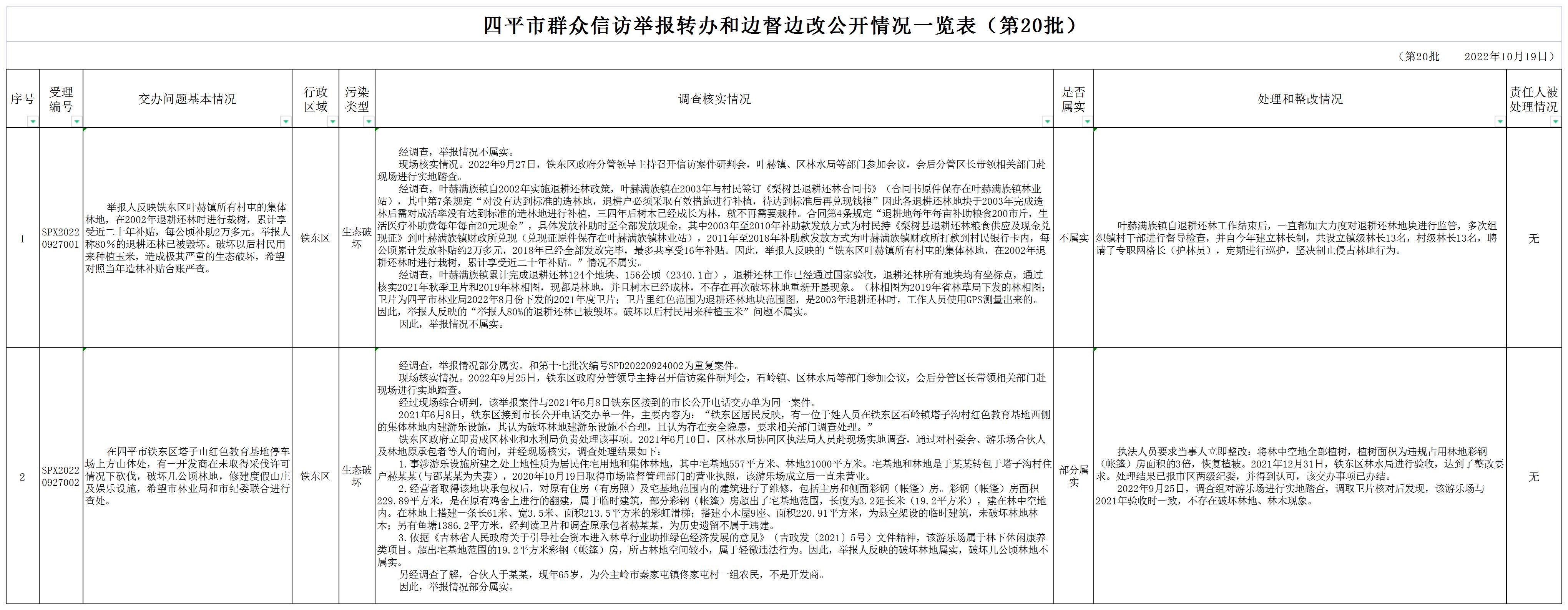 四平市群众信访举报转办和边督边改公开情况一览表(第20批)